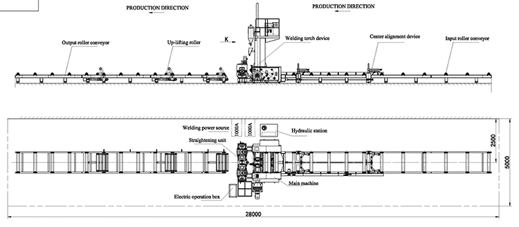Standardní linky svařování paprsků ZHJ3-in 1 H se skládají z jedné vstupní tabulky válce, hlavní svařovací a narovnávací stanice, tabulky outputroller. Na hlavním svařovacím a rovném stanici, která je zde nainstalována, je i nainstalovaná krabička na svařování a hydraulickou stanici a kontrolní stanici.