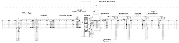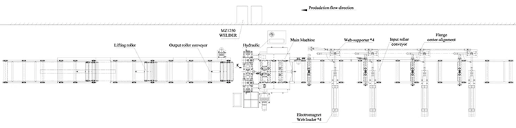 Někteří zákazníci možná budou muset zvýšit produkční produkci, potřebují jednu svařovací linku, která se skládá ze 2 sad svařovací stanice. První svařovací stanice pro svařování 1. příruby a webu, aby vytvořila paprsek T, druhá pro svařování svařovaného t-paprsku a 2. přírubu, aby vytvořila paprsek H.