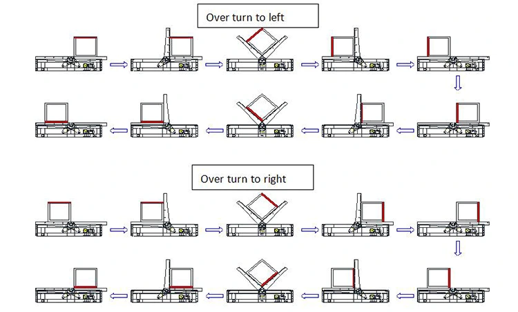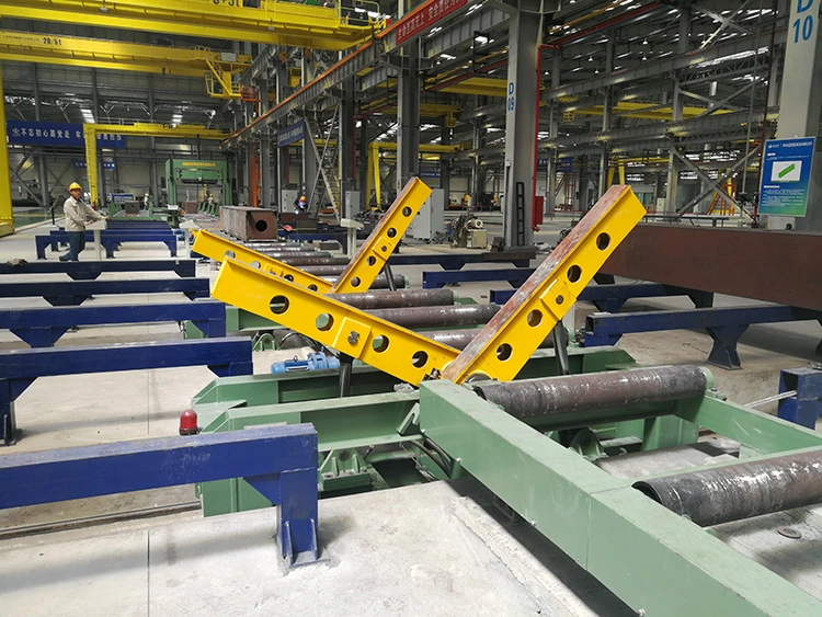 V každé sadě jsou uvedeny dva počítače pohyblivých 180 ° ploutve s hydraulickým paprskem, které se používají hlavně pro nadměrné otáčení obrobků po svařování na jedné straně. Při práci zvedněte obrobku pryč od válečného stolu nebo stojanu obrobku a reduktor řídí dvě převrácené konzoly, aby se pohybovaly synchronně, aby přesunuly obrobku na stranu válečkového stolu nebo stojanu obrobku. Poté dva hydraulické válce řídí dvě ramena ve tvaru písmene L, aby se otáčely synchronně. Po převrácení obrobku se přesune do středu válcového stolu nebo česku obrobku a potom je obrobku převezeno do dalšího procesu nebo svařováno.