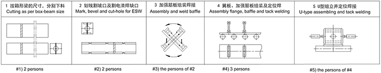 Následuje produkční vývojový diagram pro výrobu z desek do paprsku a konečné kontroly.